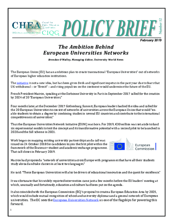 PDF) The Ambition behind European Universities Networks. Policy